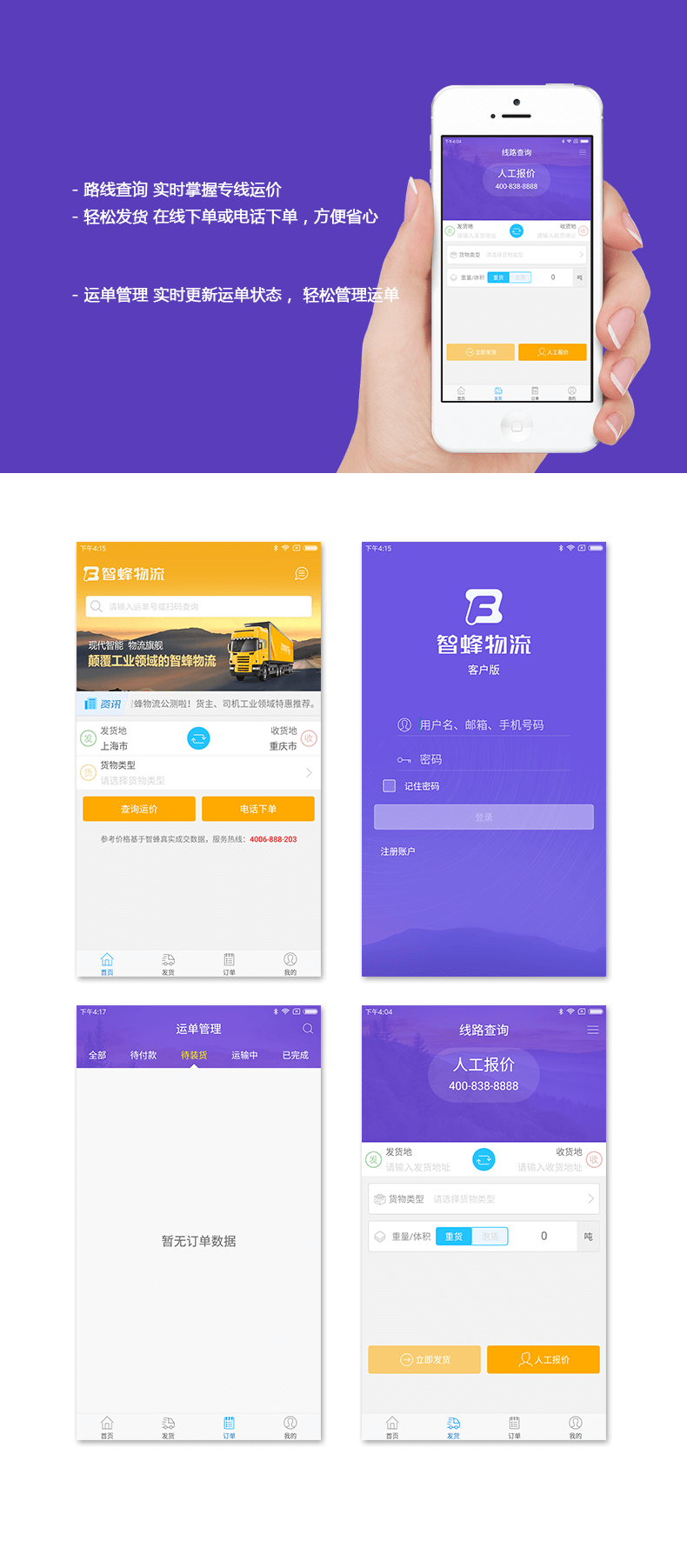 智蜂物流APP是一款生活服务应用,拥有路线查询、在线上下单,以及实时更新运单状态等功能